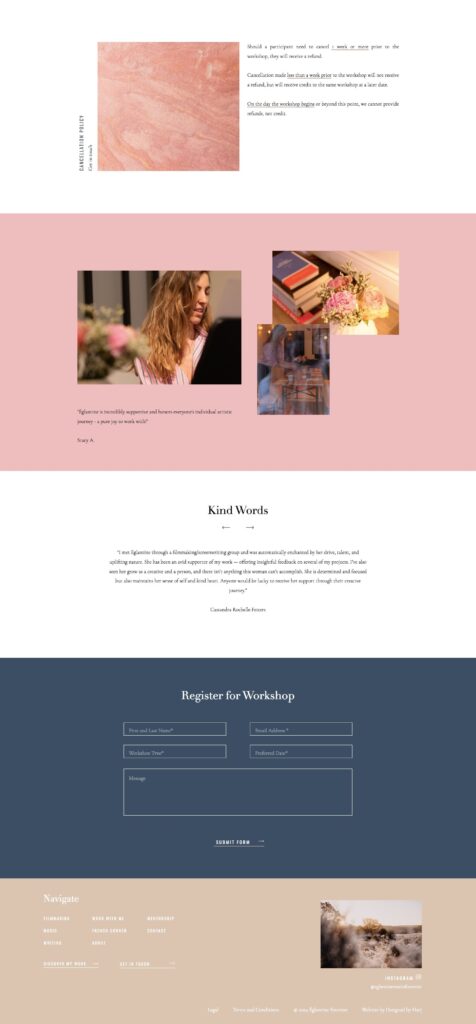 On each page we dive deeper into her art in that specific niche. And on the Work With Me page we share how the readers can learn directly from her!
