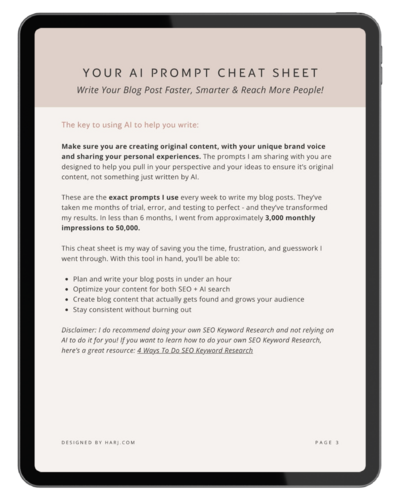 It took me years to really dial in my AI Prompts but once I did, I was able to increase the impressions to my blog from 3k-50k in less than 6 months.